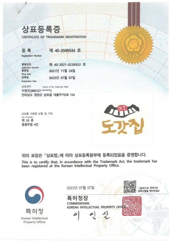 도갓집 상표등록증 페이지 정보 작성일날짜 25-11-19 조회조회 31 댓글댓글 0 본문 도갓집 상표등록증 이전글 문득 상표등록증 다음글 2023 궁중술빚기대회 금상 댓글목록 0 등록된 댓글이 없습니다.